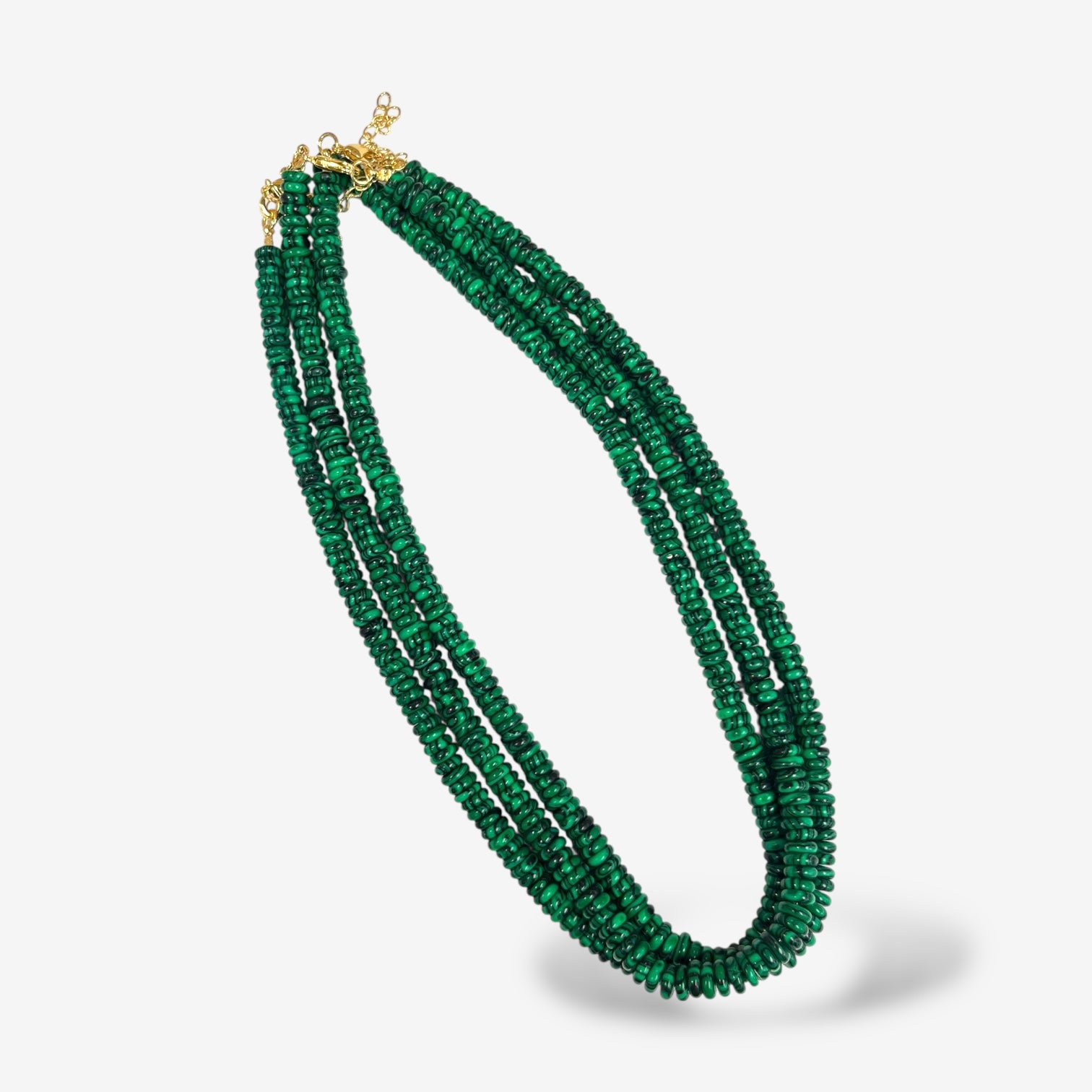 A necklace composed of smooth disc-shaped beads, offering a modern and striking statement look.