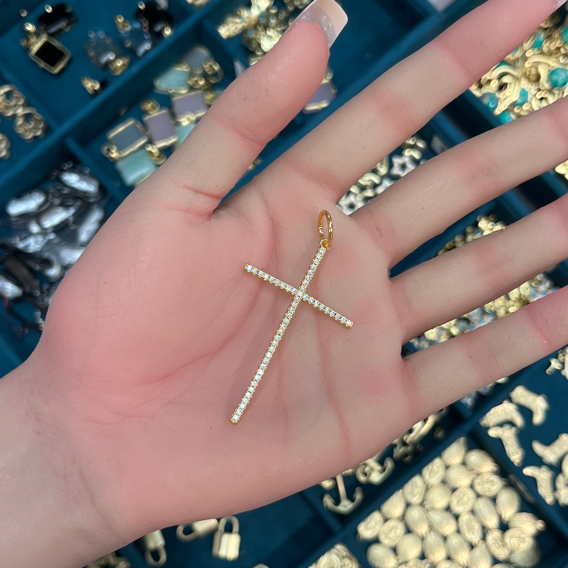 Our jewelry is hand-set in nickel-free brass and sealed to prevent tarnish.