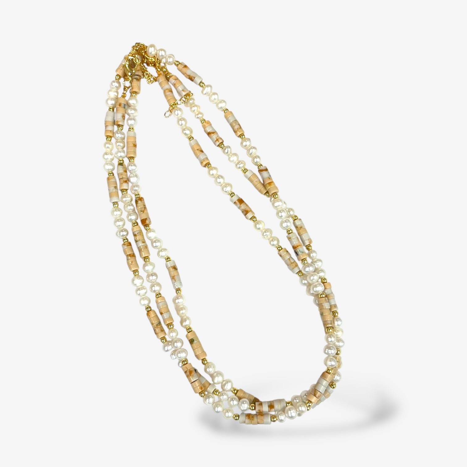 Material: Freshwater pearls, glass beads, and gold-tone accents