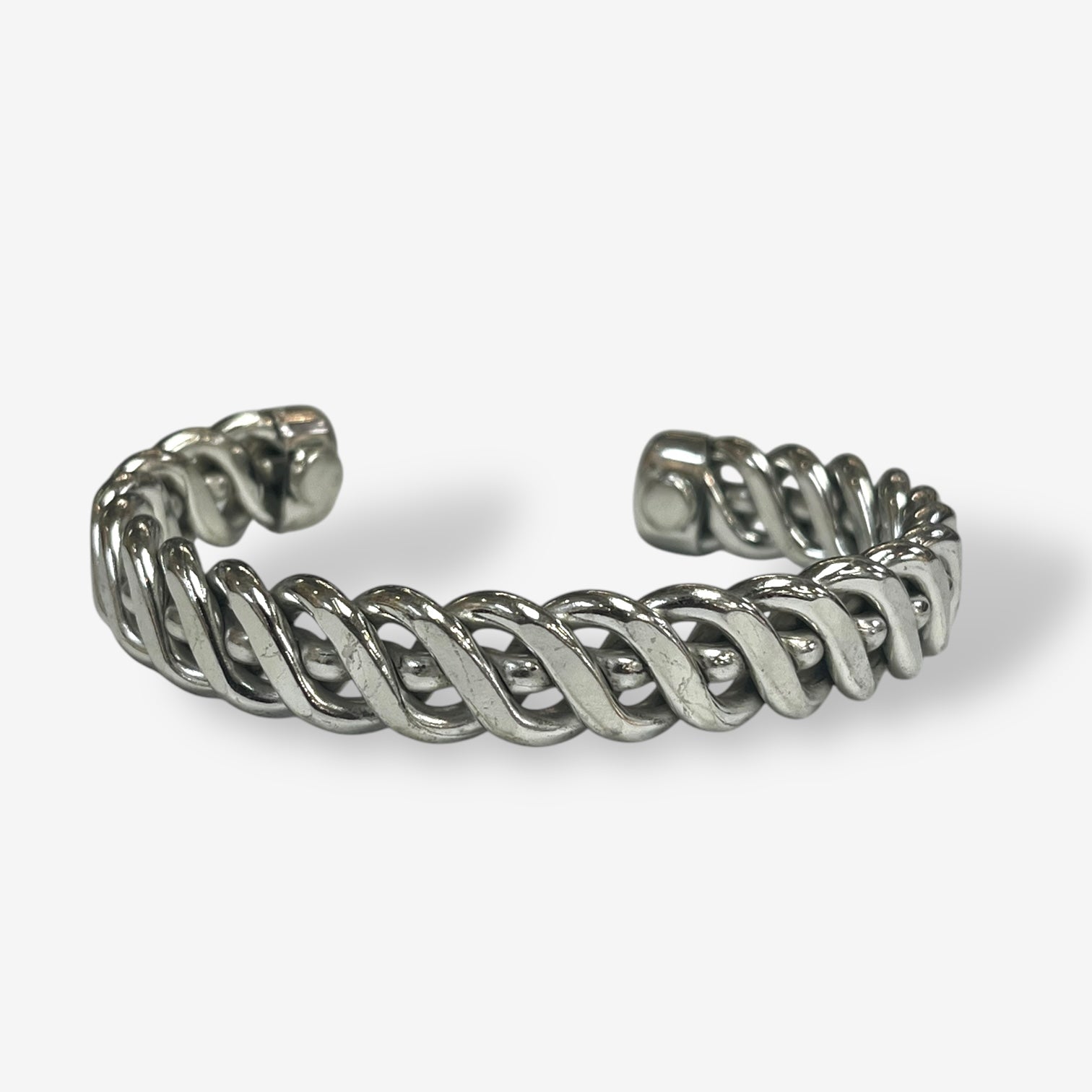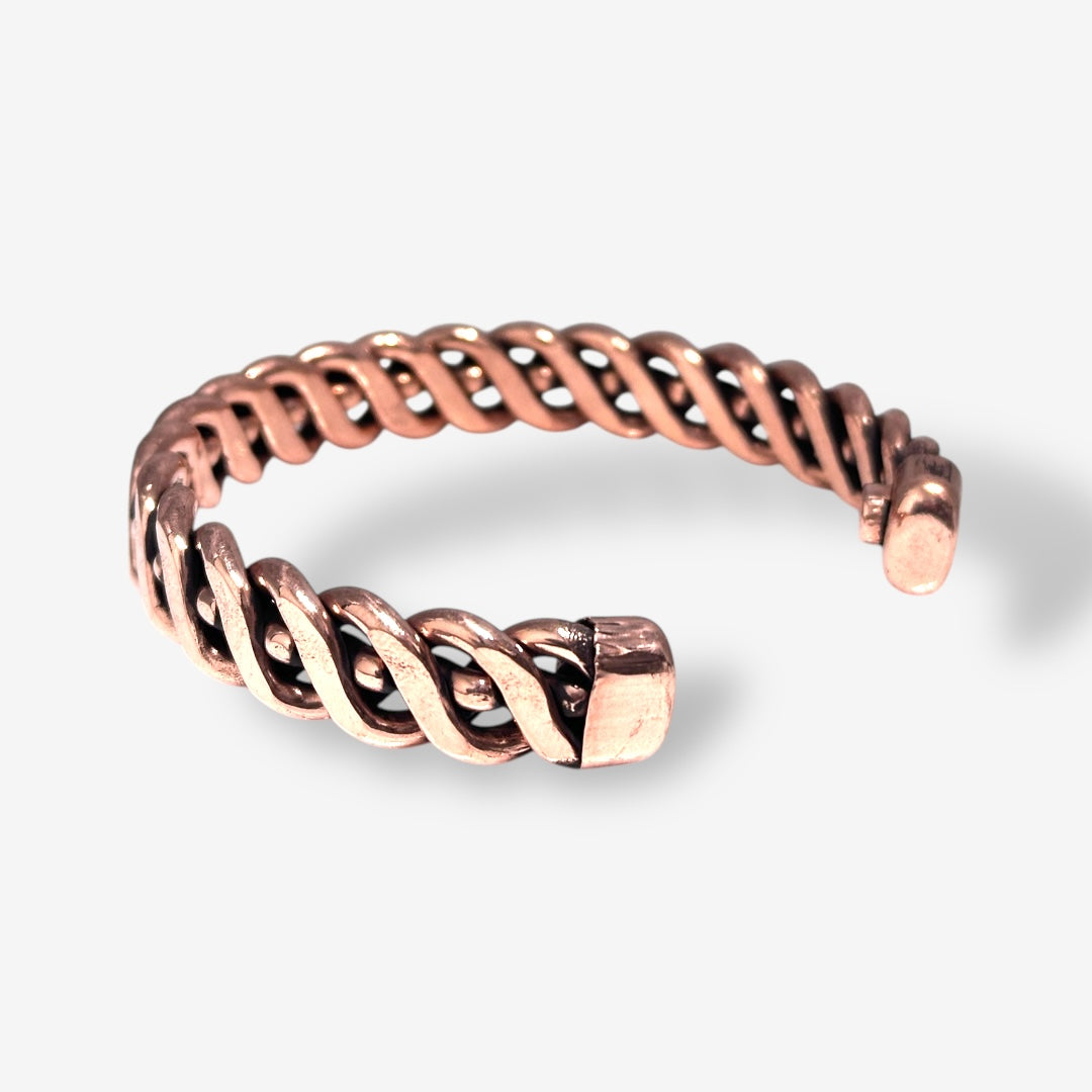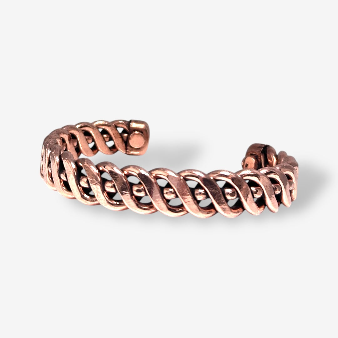- Material: Solid copper with a handwoven texture, Discreet therapeutic magnets are embedded inside.