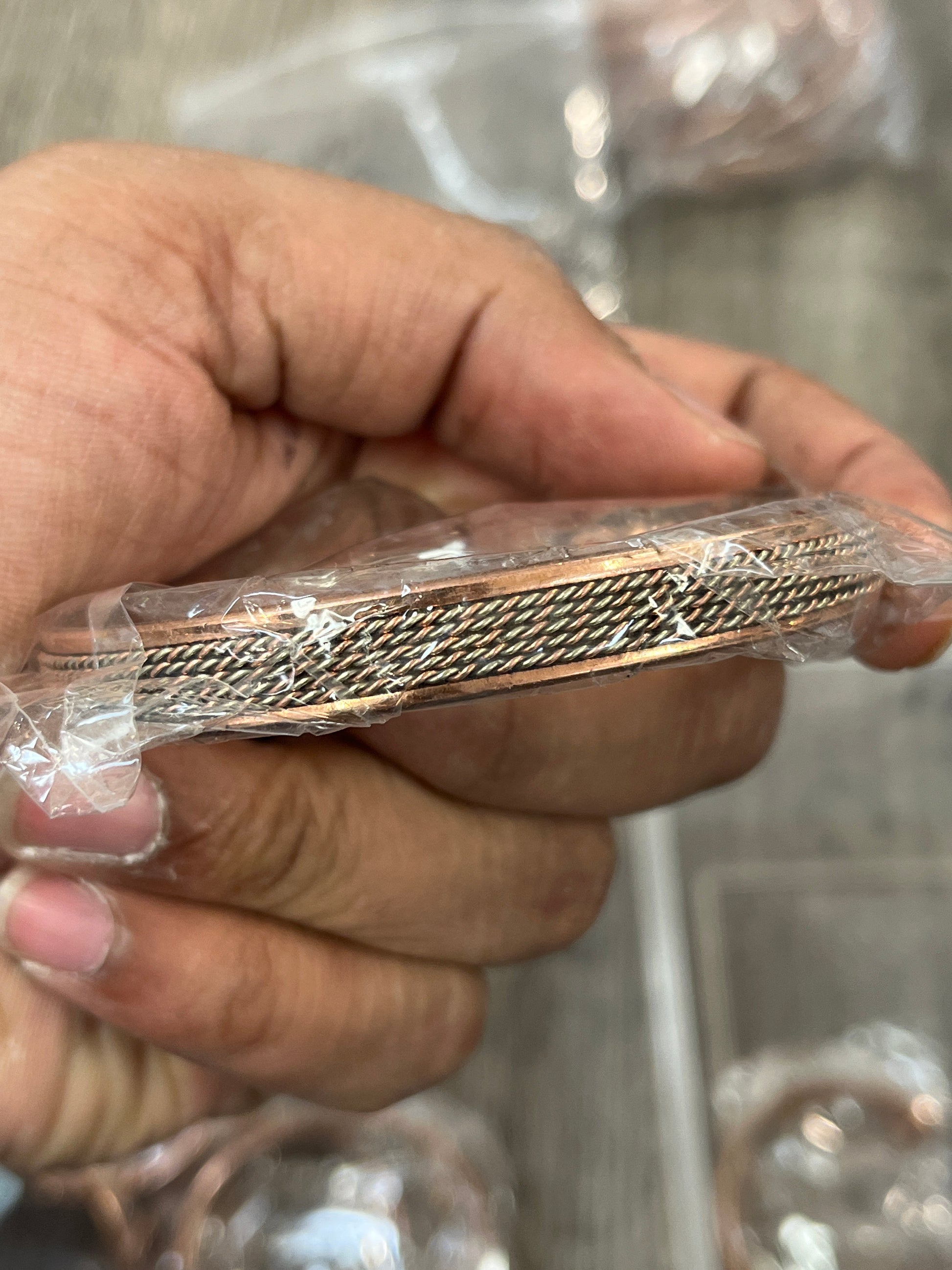 Crafted with care, this copper cuff features intricate weave work that celebrates artisanal tradition. Embedded magnets on the inner band add a subtle wellness touch, while the warm, earthy glow of copper wraps your wrist in timeless style. Whether worn solo or stacked, it's a grounded, meaningful piece made to last