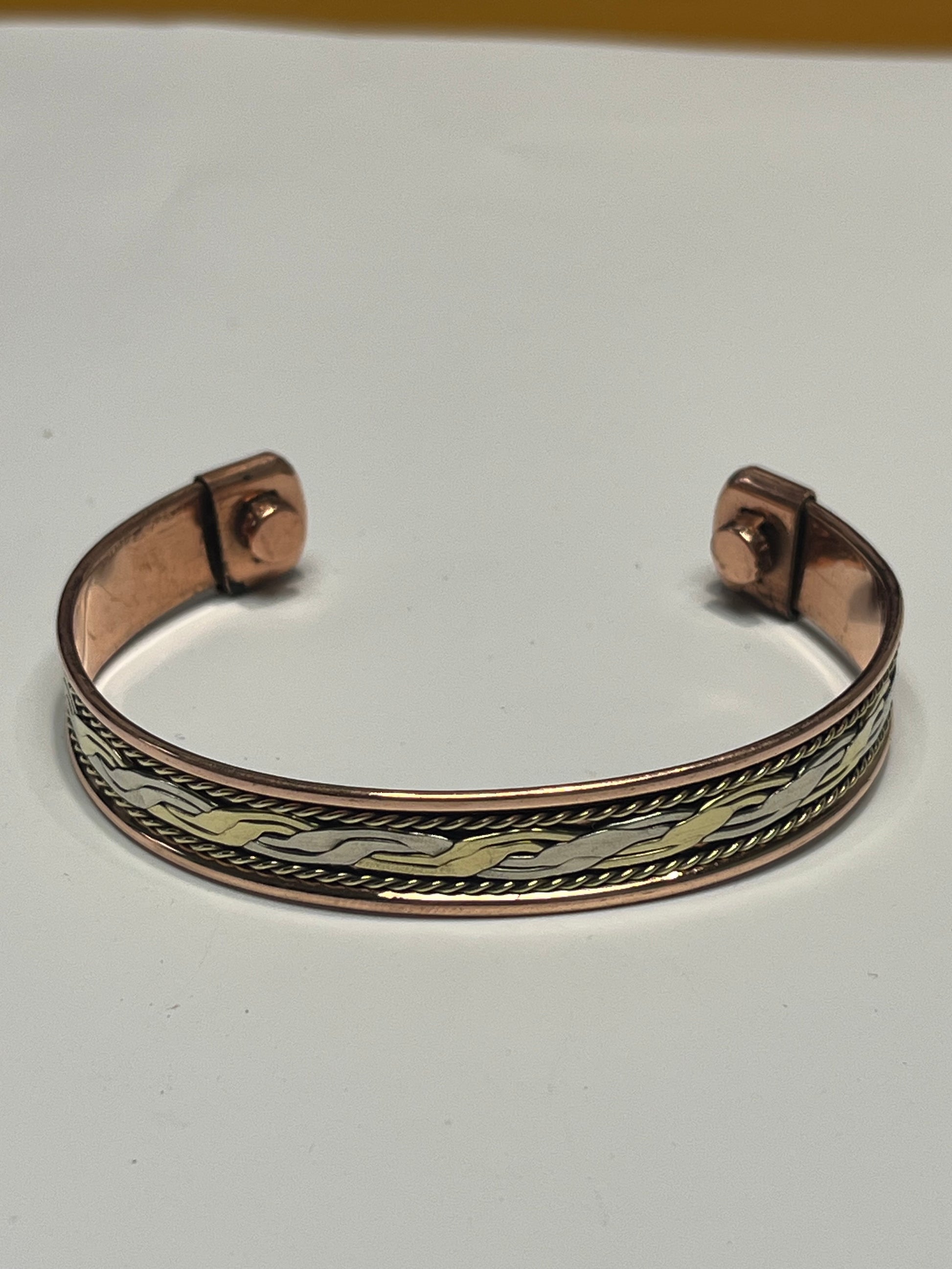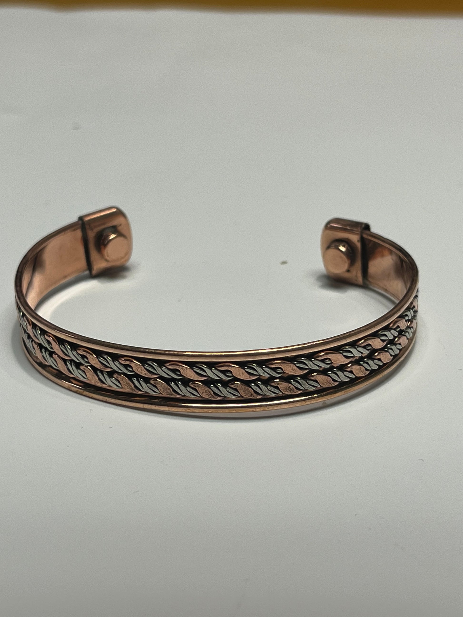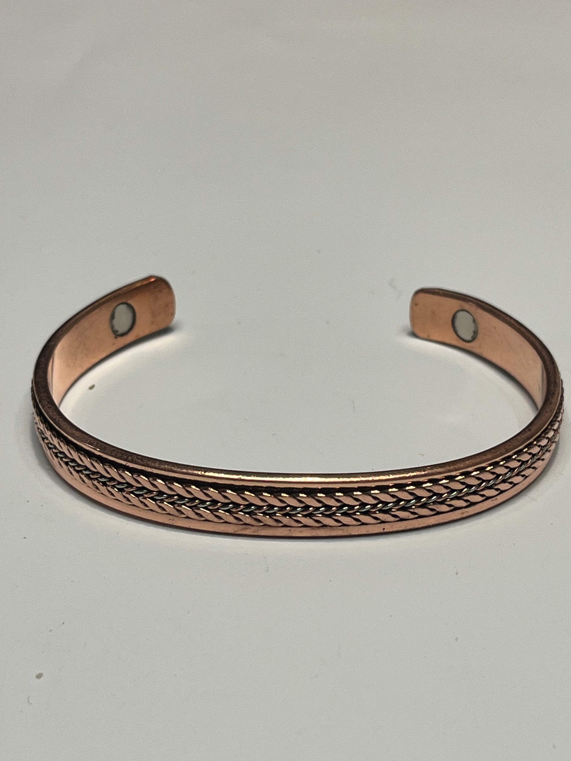 - Material: Solid copper with a handwoven texture, Discreet therapeutic magnets are embedded inside.