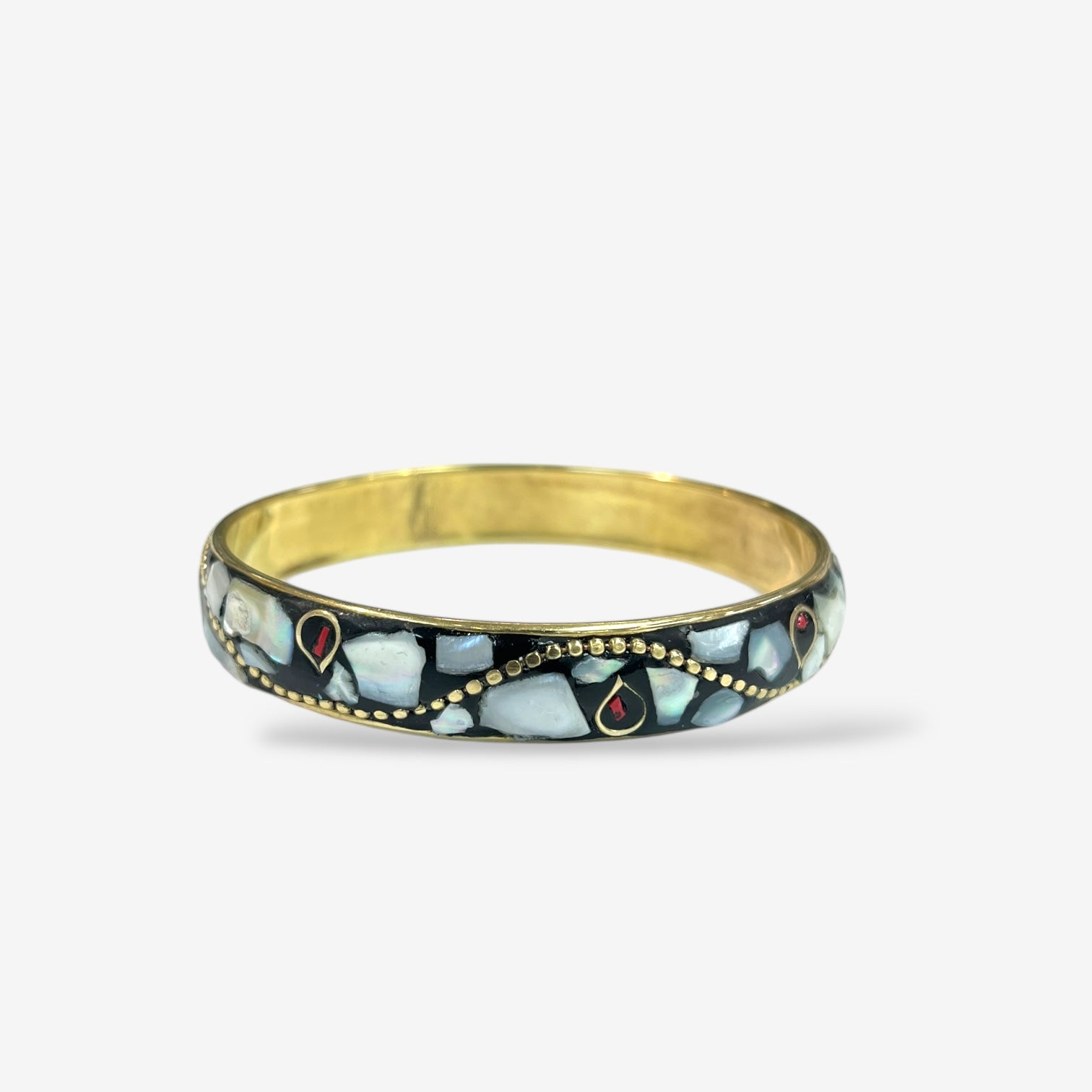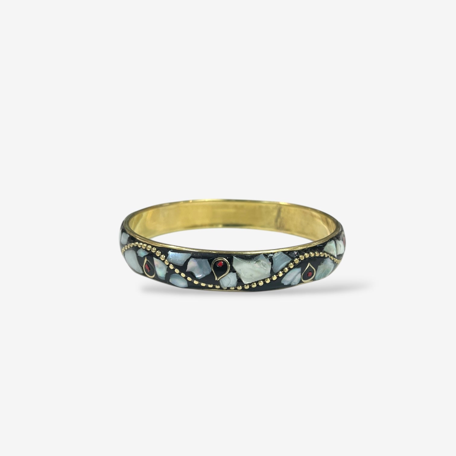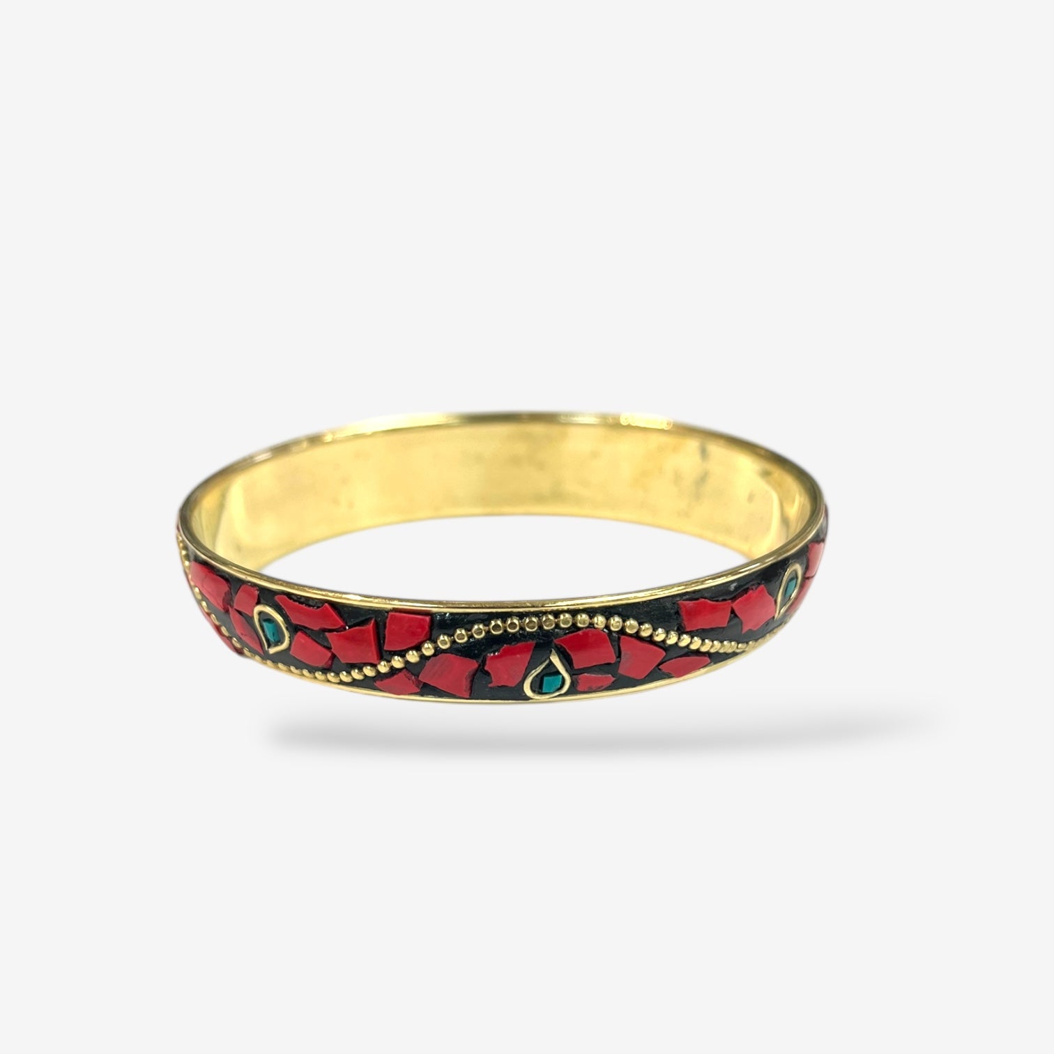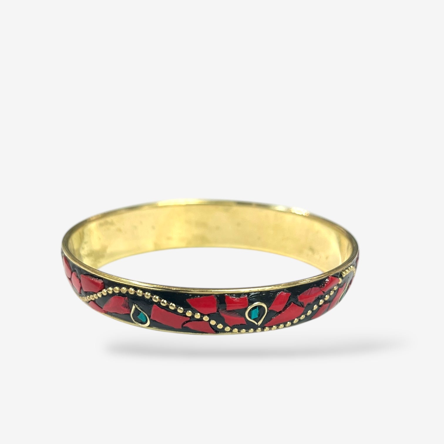 This Crimson Regal Bangle is more than jewelry—it’s a statement of strength, tradition, and refined beauty. Crafted with a rich gold-tone base, its deep crimson and bold black geometric patterns exude a striking contrast, making it the perfect piece for those who appreciate artistry and heritage. Whether you’re dressing up for a celebration or adding a unique touch to your everyday look, this bangle brings confidence and sophistication