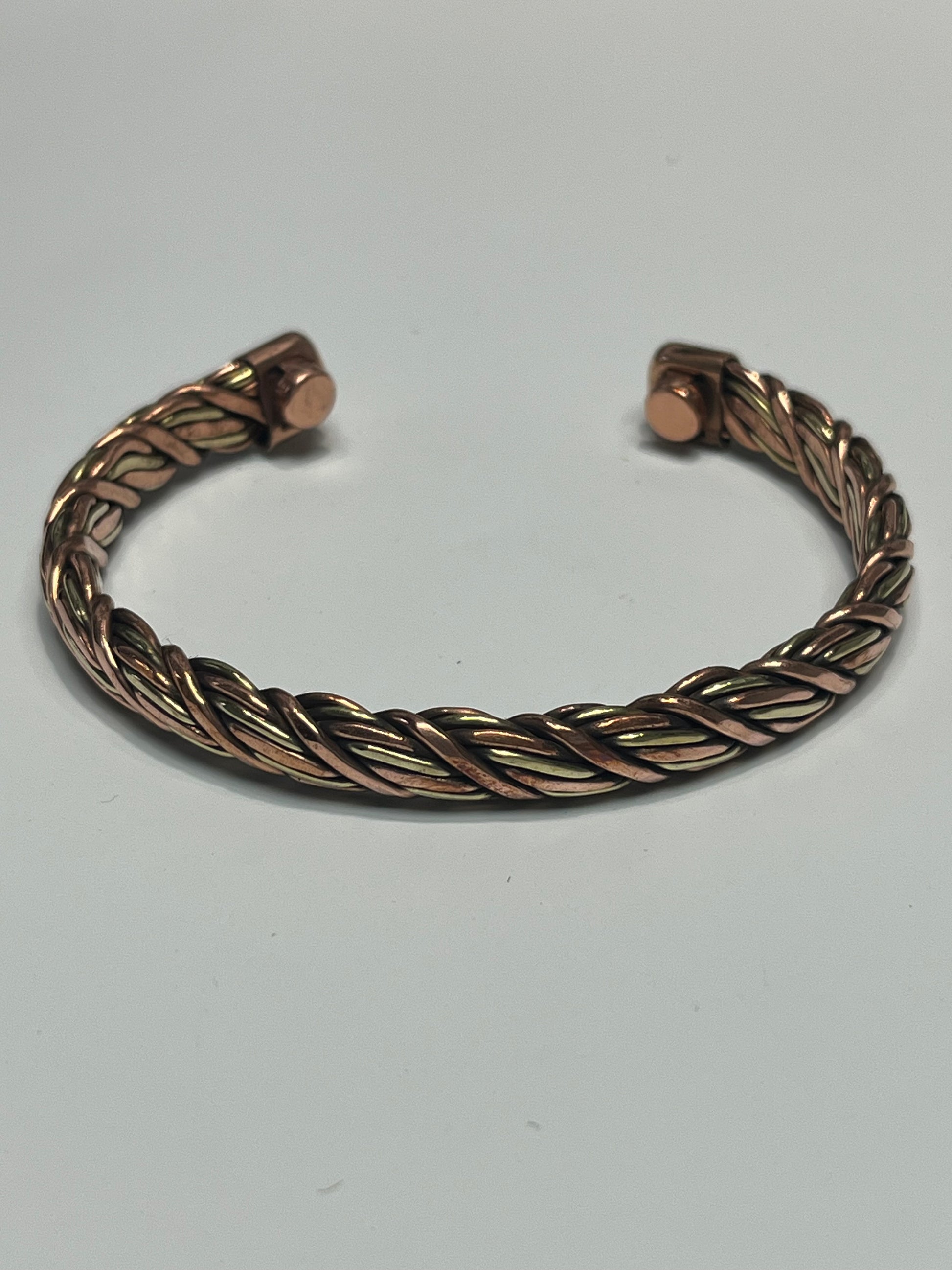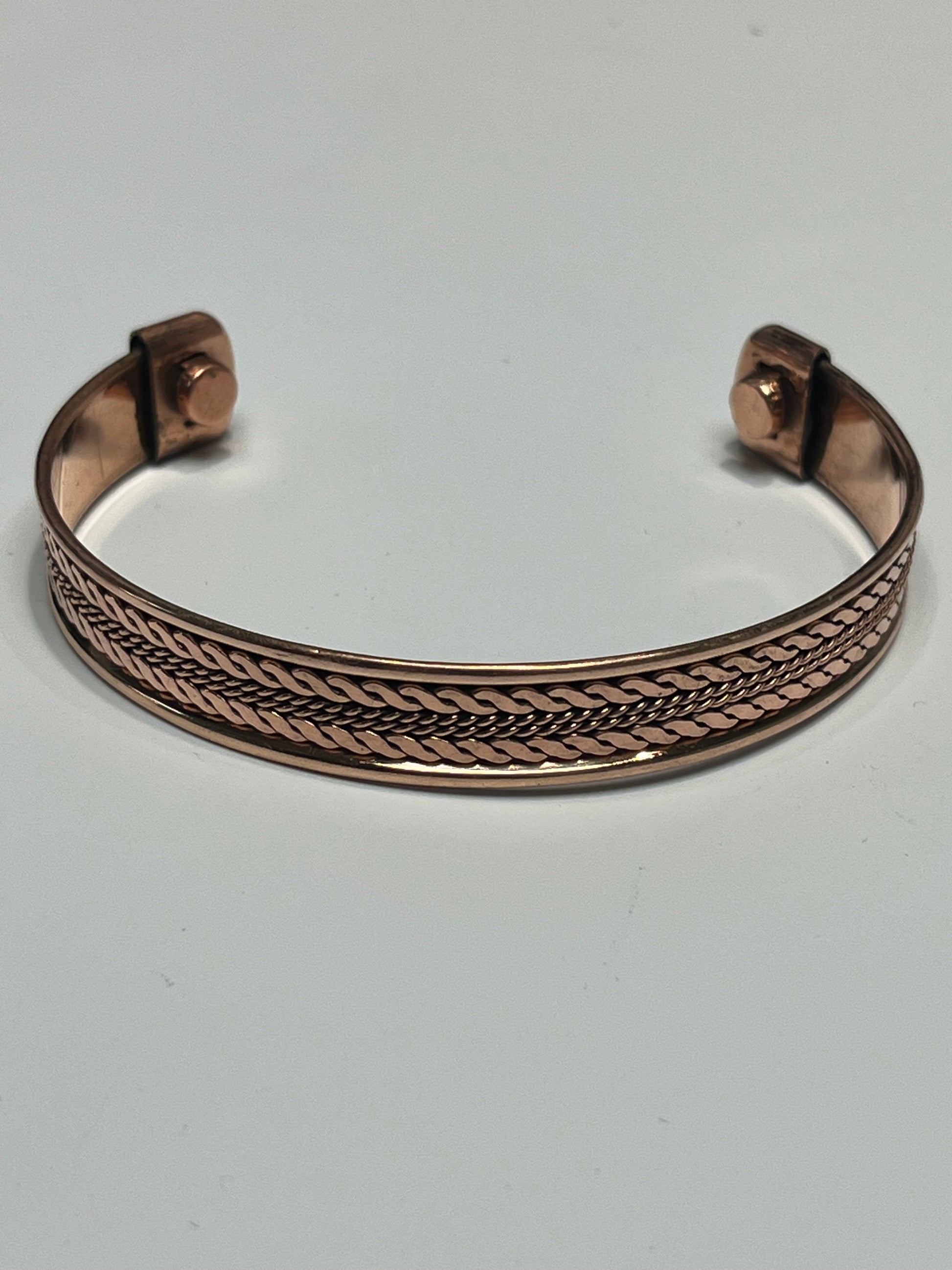 - Material: Solid copper with a handwoven texture, Discreet therapeutic magnets are embedded inside.