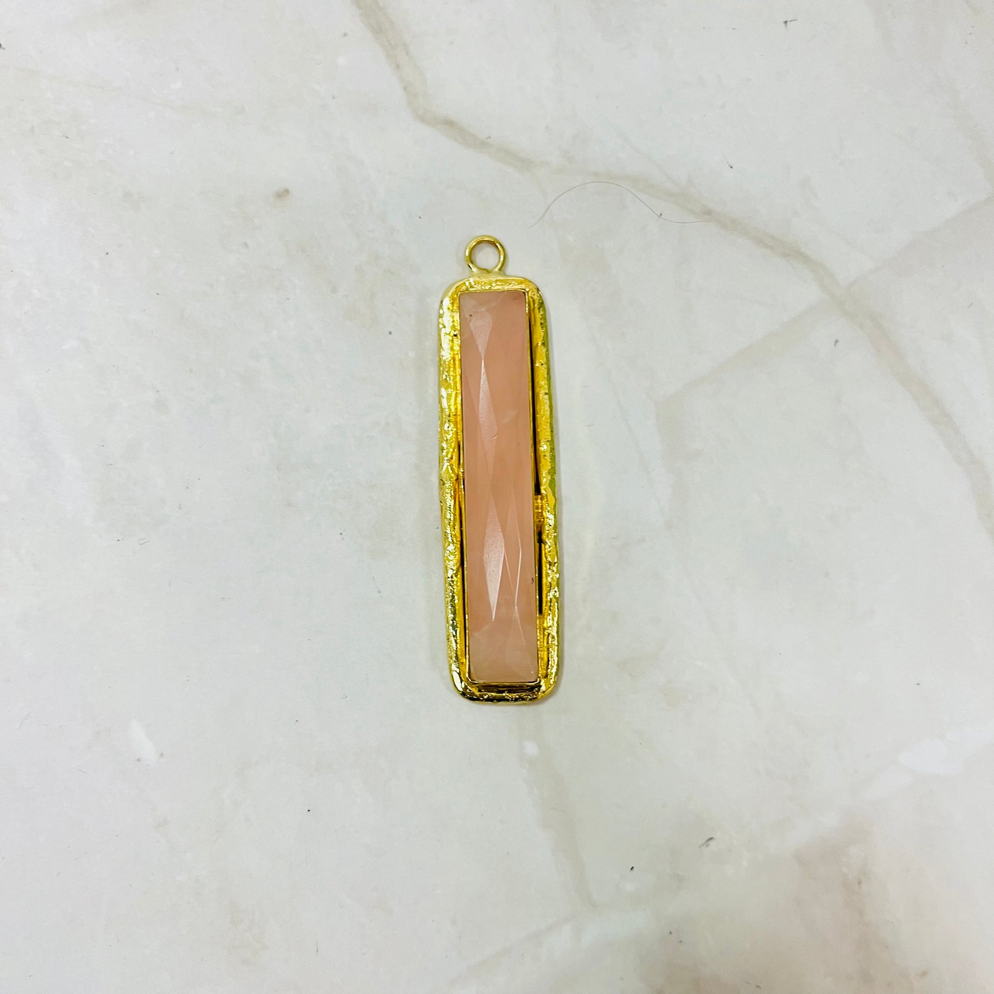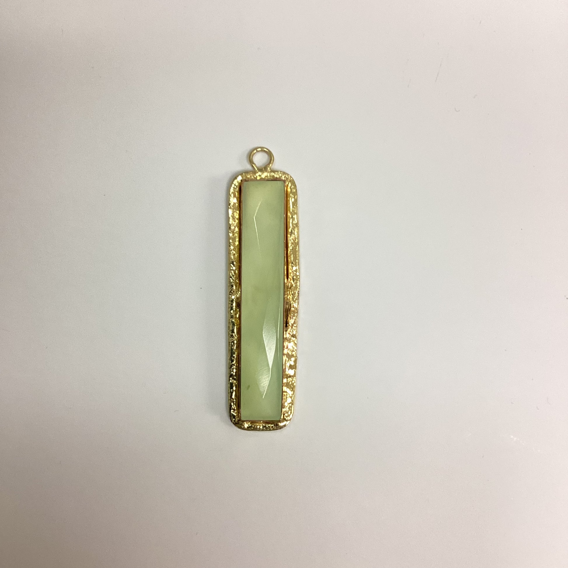 Modern and sleek, this pendant highlights the brilliance of a faceted rectangle-cut stone framed in a minimalist brass setting. The geometric design gives it a clean, contemporary look, while the facets catch the light beautifully, adding sparkle and dimension.