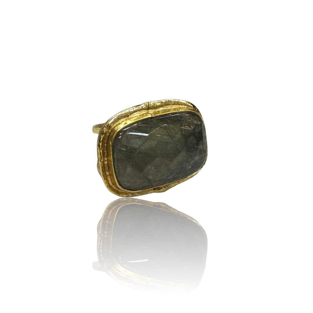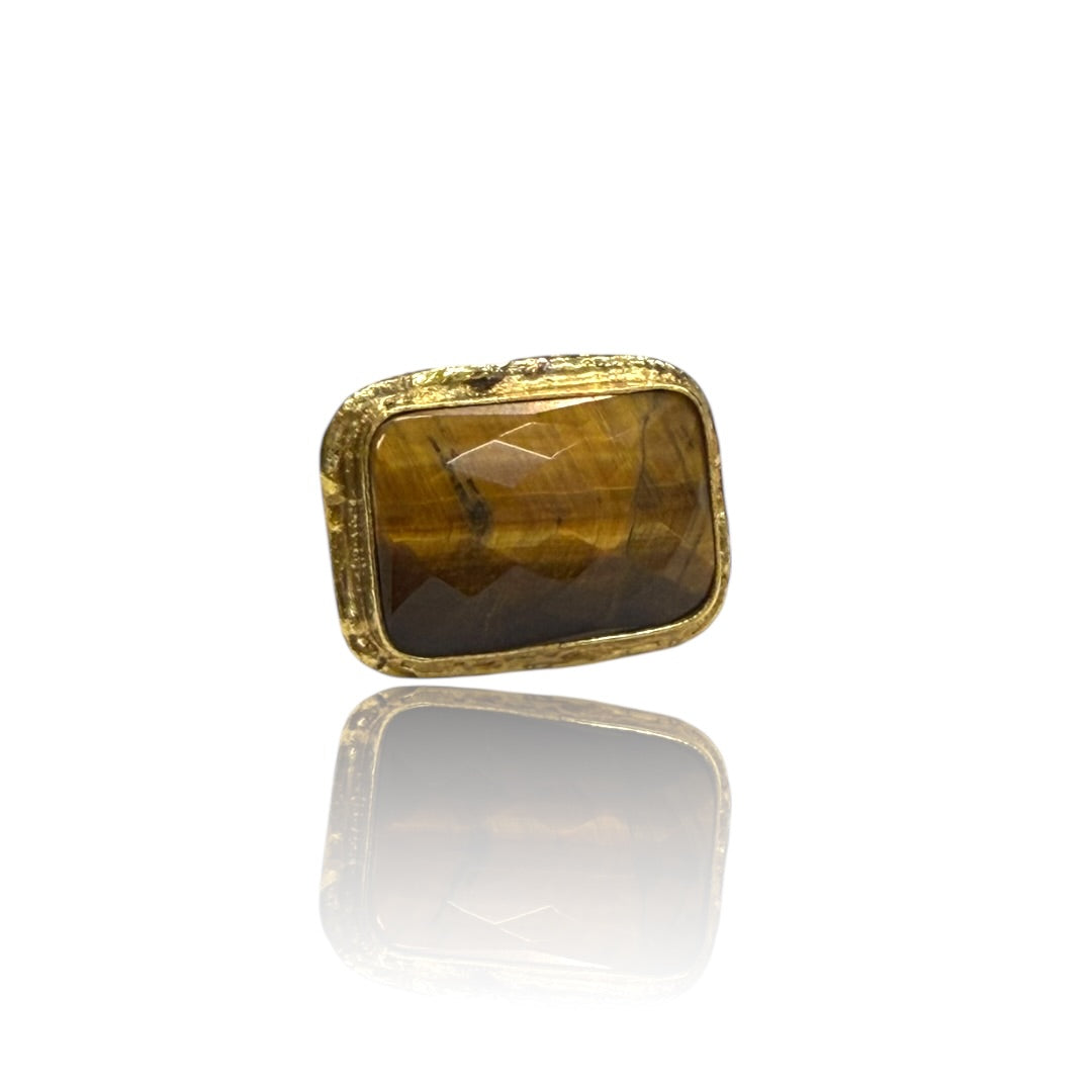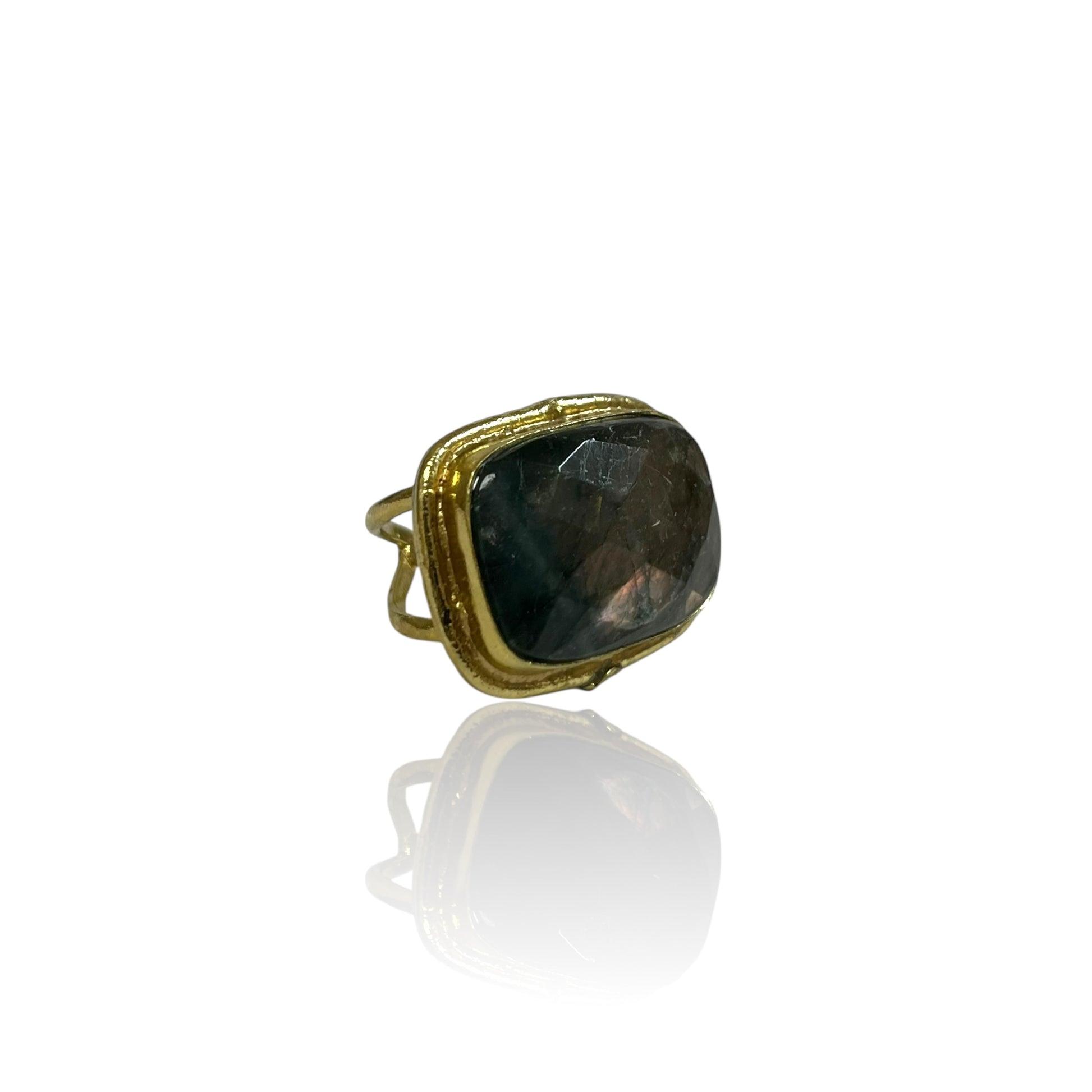 The Phoenix Rings feature stunning gemstones set in brass. Their bold design and vibrant stones make them standout accessories.